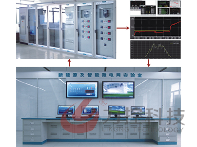 本系統(tǒng)由五個(gè)典型部分組成,分別儲(chǔ)能系統(tǒng)、供配電系統(tǒng)、監(jiān)控調(diào)度系統(tǒng)、環(huán)境監(jiān)控云服務(wù)系統(tǒng)、負(fù)載系統(tǒng)、及發(fā)電系統(tǒng),其中發(fā)電部分有風(fēng)力發(fā)電和太陽(yáng)能發(fā)電及氫能源組成。微網(wǎng)系統(tǒng)具備:發(fā)電部分(分布式電源)、RLC可編程負(fù)載、智能開(kāi)關(guān)柜單元、后臺(tái)監(jiān)控調(diào)度系統(tǒng)。